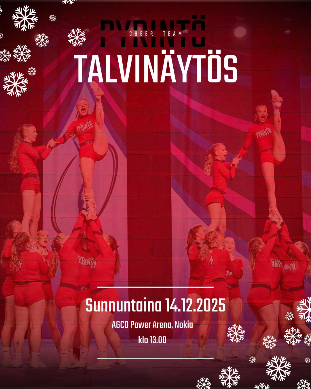 Liput pääset ostamaan täältä: https://www.tiketti.fi/pyrinto-cheer-team-talvinaytos-2025-agco-power-arena-nokia-lippuja/112862