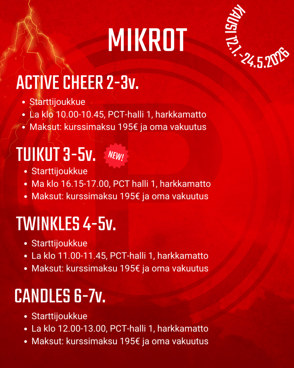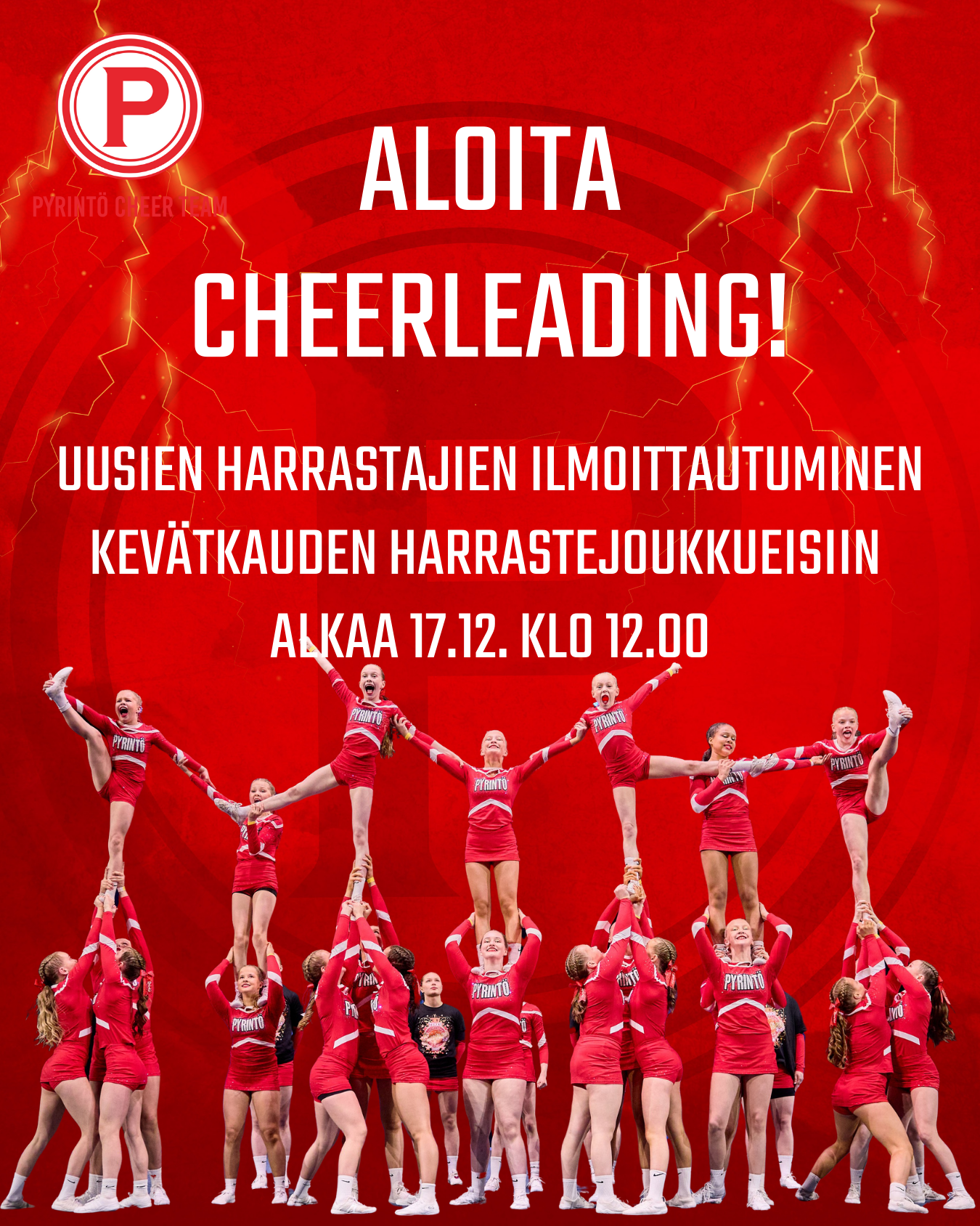 Ilmoittautuminen PCT:n MyClubissa, lisätietoa cheerleading@pyrinto.fi