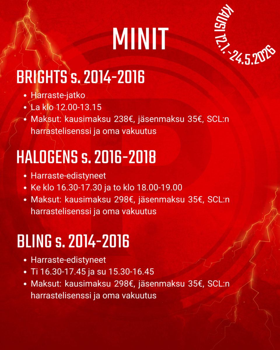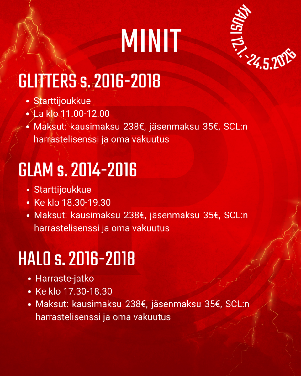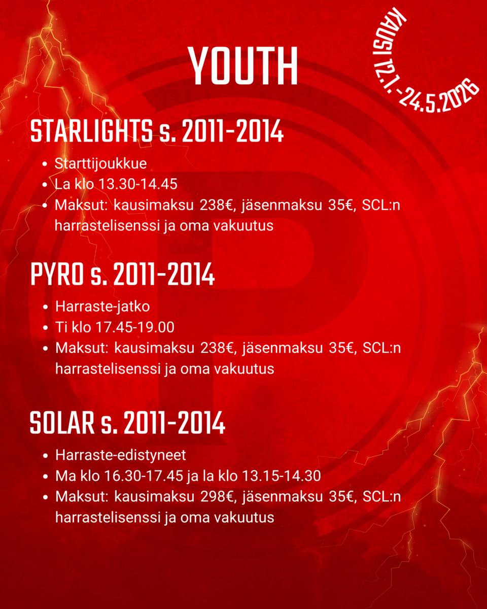▪️ Et tarvitse minkäänlaista aikaisempaa lajitaustaa starttijoukkueissa. Opit lajin alkeita askel askeleelta kannustavassa valmennuksessa. Jatko- ja edistyneemmillä tasoilla pääset haastamaan itseäsi lisää, kun lajin perusteet ovat ensin hallussa.