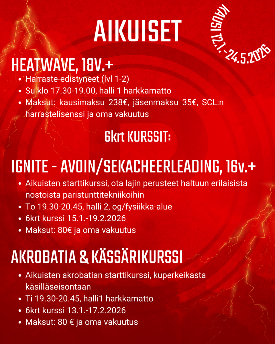 Kevään ilmoittautuminen aukeaa cheerleadingin harrasteryhmiin ke 17.12. klo 12.00!