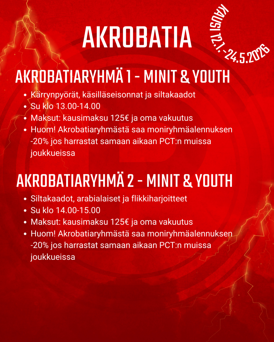 ▪️ Opi akrobatian perusteita, vahvista kehonhallintaa ja treenaa huimia nostoja!
